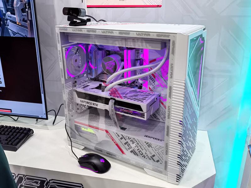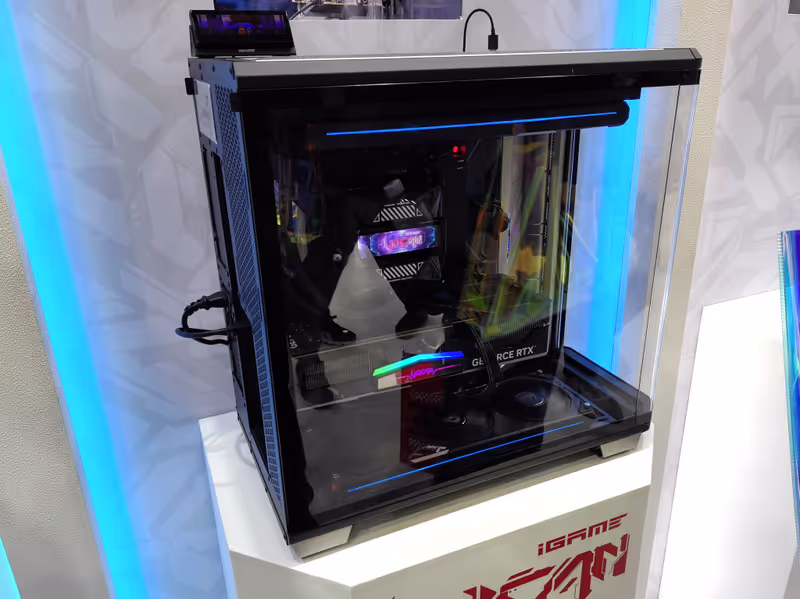 Mereka pertama-tama memperkenalkan kami pada dua seri PC rakitan mereka, yaitu iGame Ultra Series PC Set dan Vulcan Series PC Set, yang memiliki konsep yang berbeda. Seri Ultra hadir dengan warna putih dan aksen RGB, sementara seri Vulcan hadir dengan warna hitam, mencerminkan gaya stealth.
