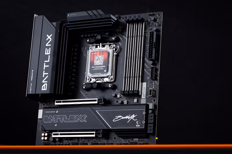 Model ketiga yaitu COLORFUL BATTLE-AX B850M-PLUS S WIFI7 membawa desain tegas dengan armor hitam yang menonjolkan garis kokoh pada setiap sisi. Motherboard ini memakai desain daya 10+2+1 fase dengan DrMOS 55A untuk mendukung prosesor seperti Ryzen 9 9900X3D. Konektivitas jaringan juga ditingkatkan melalui konfigurasi LAN 5G dan Wi-Fi 7 yang menawarkan bandwidth lebih stabil untuk bermain gim secara kompetitif. Identitas visual yang kuat memberi kesan lebih agresif dan cocok bagi pengguna yang menyukai gaya maskulin.