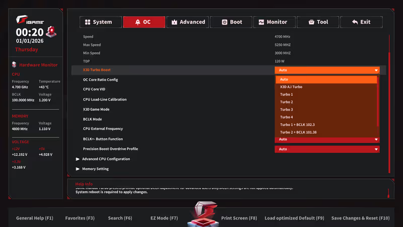 Sistem secara otomatis akan mengoptimalkan jam dasar dan parameter PBO yang rumit. Tersedia pula beberapa profil manual untuk menyeimbangkan antara performa dan stabilitas sistem. Gamer bisa mendapatkan peningkatan frame rate dengan cara yang sangat instan. Semua proses ini dilakukan tanpa mengorbankan kestabilan komputer saat bermain game.