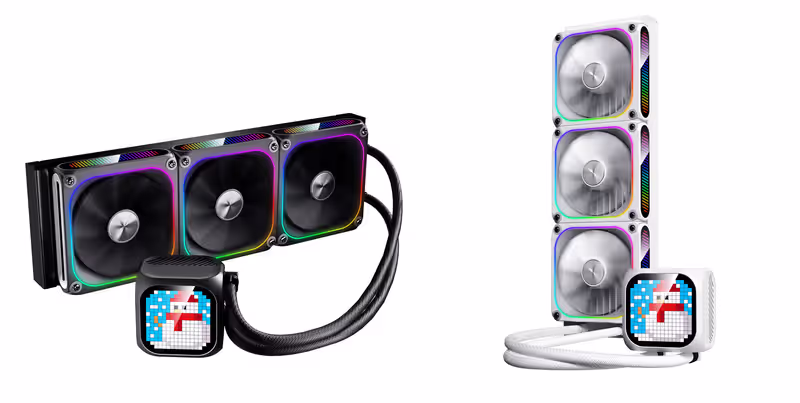 Dot Matrix Liquid Cooler menghadirkan desain tampilan piksel yang unik, termasuk kipas dengan tampilan piksel di bingkai samping. Pengguna dapat memamerkan gambar favorit mereka atau bahkan membuat desain unik mereka sendiri melalui software!