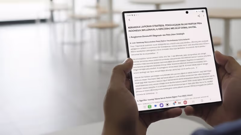 Setelah itu, pemilik brand bisa langsung menyalin semua hasil riset ke Samsung Notes di Fold7. Di sana, Note Assist membantu menyusun strategi peluncuran, memperbaiki format catatan, serta merangkum poin-poin penting agar siap dipresentasikan. Ini memungkinkan alur kerja yang mulus dari analisis tren hingga eksekusi rencana bisnis tanpa berpindah-perangkat.