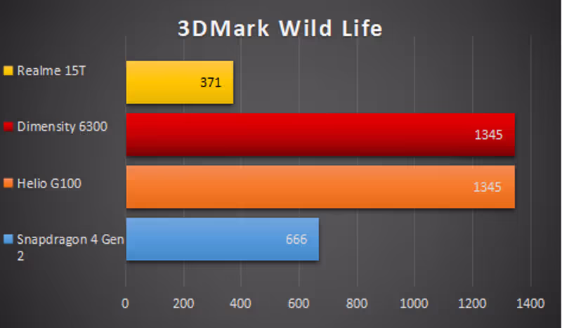 Realme 15T ditenagai oleh chipset MediaTek Dimensity 6400 yang dipadukan dengan CPU ARM Cortex-A76 dan GPU Mali-G57 MC2. Seperti yang sudah ditulis di atas, Dimensity 6400 hanya berbeda 100 MHz saja dari Dimensity 6300. Seharusnya, hampir tidak ada peningkatan kinerja yang terasa antara kedua SoC. Walaupun begitu, pada aplikasi benchmark hal tersebut tentu saja terdeteksi dan berbeda.