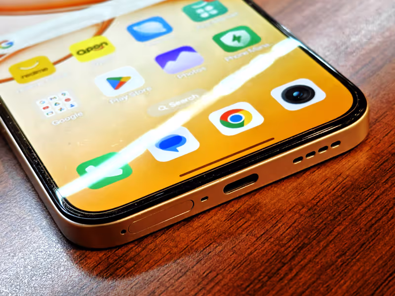 Pada sisi kanan perangkat, terdapat tombol volume dan tombol power. Port USB Type-C berada di bagian bawah, bersama dengan gril speaker utama, port mikrofon, serta slot SIM hybrid, yang berarti pengguna dapat memilih antara dua kartu SIM atau satu kartu SIM dan satu kartu microSD untuk ekspansi penyimpanan.