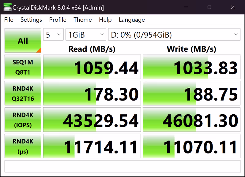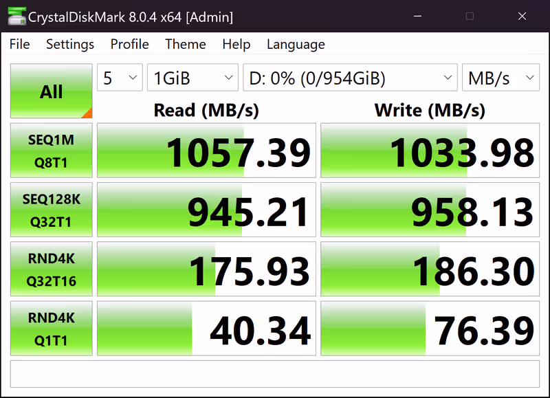 Janji AGI ternyata memang benar adanya. Pada pengujian Crystal Disk Mark dan ATTO Disk Bench, ED238 mampu berlari dengan kecepatan di atas 1 GB/s. Hal ini tentunya bakal membuat transfer data dari penyimpanan internal menjadi lebih cepat.