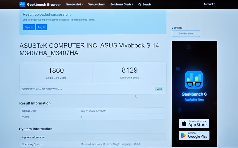 Jika kita lihat dari benchmark dan performa penggunaan, Vivobook S14 M3407HA merupakan laptop yang sangat andal untuk tugas produktivitas harian dan aktivitas berbasis AI. Berikut adalah beberapa benchmark yang saya jalankan