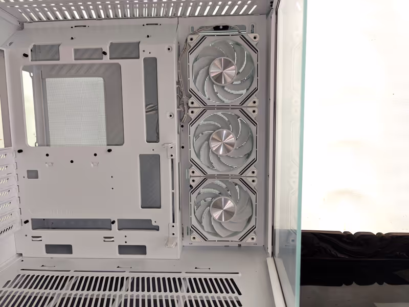 Chamber utama yang lega ini juga memungkinkan pemasangan sistem pendingin cair atau liquid cooler dengan radiator. Di bagian bawah mendukung opsi radiator ukuran 240mm atau 280mm, bahkan 360mm, demikian juga dengan panel bagian atas dan samping. Selain itu, di panel belakang tersedia beberapa slot lubang horizontal untuk port dari VGA yang terpasang. Umumnya VGA terpasang dalam posisi horizontal mengikuti posisi motherboard.