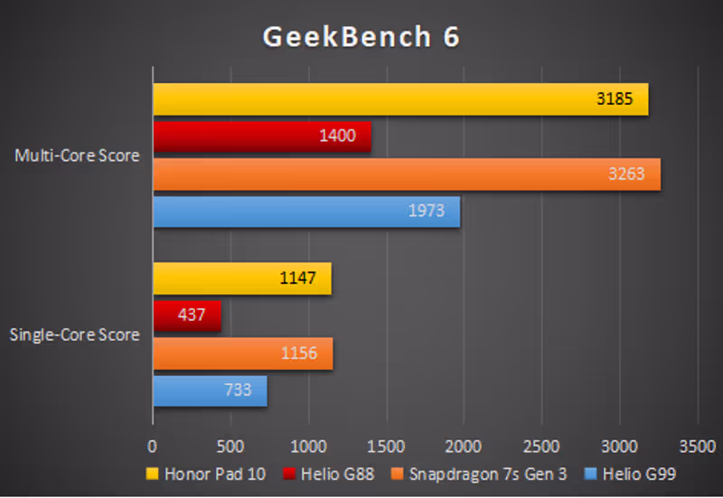 Di balik layar, Honor Pad 10 ditenagai oleh chipset Qualcomm Snapdragon 7 Gen 3 (SM7550-AB), yang merupakan SoC kelas menengah yang andal. SoC tersebut menggunakan prosesor ARM Cortex-A715 2.63 GHz, 3 core Cortex-A715 2.4 GHz, dan 4 core Cortex-A510 1.8 GHz.Chipset ini dipadukan dengan RAM 8 GB dan penyimpanan internal 256 GB, konfigurasi yang sangat kompetitif untuk harga yang ditawarkan.