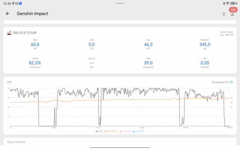 Selain untuk bekerja, chipset ini juga sudah mampu menjalankan beberapa game AAA di Android, termasuk Genshin Impact. Game tersebut bisa berjalan dengan rata-rata framerate 46,3 fps di setting rata kanan. Anda bisa melihat hasil benchmark Genshin Impact dari gambar berikut ini