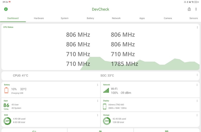 | CPU | 1×2.84 GHz Cortex-X1 + 3×2.42 GHz Cortex-A78 + 4×1.80 GHz Cortex-A55 |