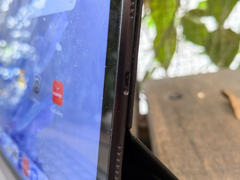 Saat ada dalam posisi landscape, tombol volume berada pada sisi kiri atas beserta dengan konektor untuk stylus-nya yang saat ini sudah tidak terlihat. Pada bagian kiri akan ditemukan tombol power beserta dua speaker kiri. Untuk bagian kanannya dapat ditemukan dua speaker kanan beserta port USB-C 3.2 Gen 1 yang bisa pula dihubungkan dengan monitor.