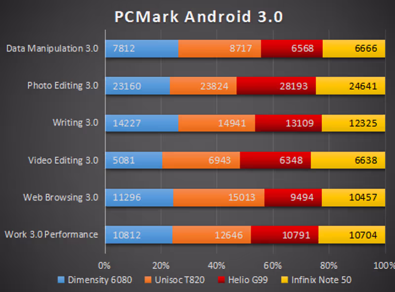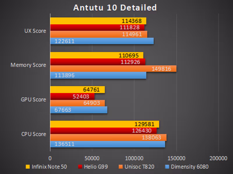 Spesifikasi Infinix Hot 50 dapat dianggap lebih unggul dibandingkan perangkat lain di kisaran harga yang sama. Perangkat ini dilengkapi dengan chipset Mediatek Helio G100, yang serupa dengan G99, dan cukup andal untuk menjalankan berbagai game.