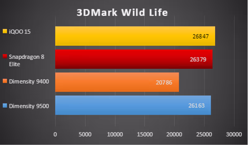 Daya tahan baterai menjadi salah satu keunggulan utama iQOO 15 dengan kapasitas 7000mAh. Dalam pengujian dengan PCMark, perangkat ini bisa mencapai 13 jam 50 menit. Kecepatan pengisian baterai mencapai 100W wired charging yang mampu mengisi dari 0 hingga 100% dalam waktu sekitar 59 menit. Wireless charging juga didukung dengan kecepatan 40W yang cukup cepat untuk standar pengisian nirkabel.