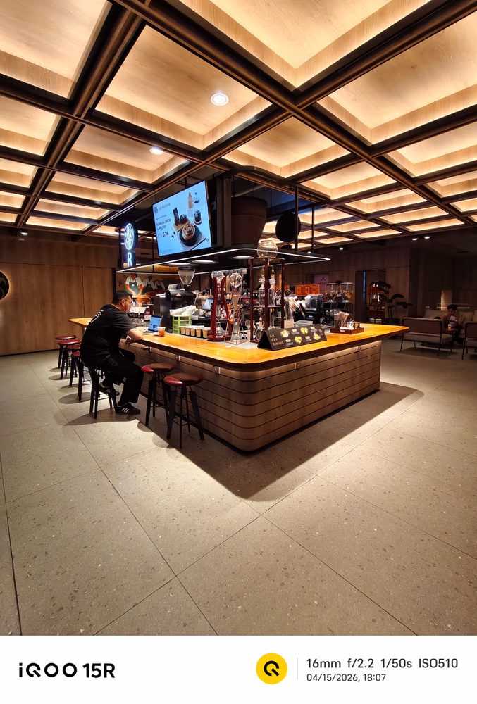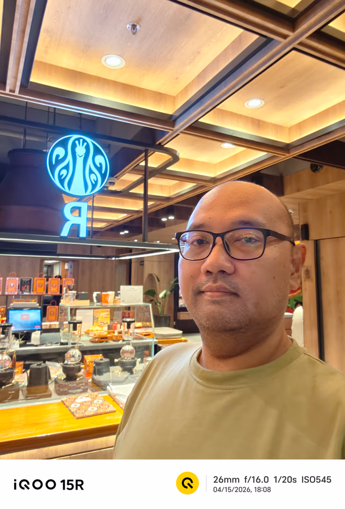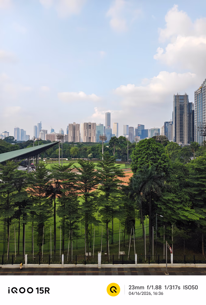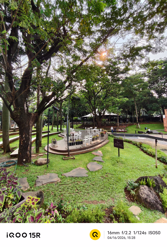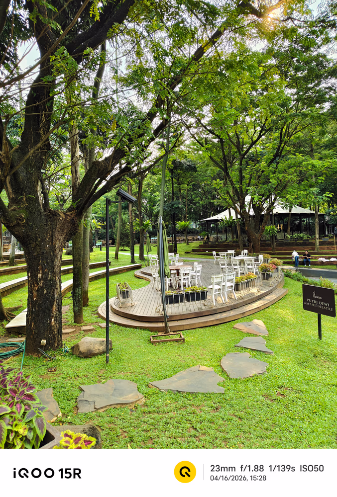 Saat beralih ke lensa ultra-wide, penurunan kualitas cukup terasa dibandingkan sensor utama, yang wajar mengingat perbedaan spesifikasi. Detail di tepi frame sedikit melunak dan distorsi barrel muncul pada garis lurus di pinggir gambar. Namun untuk kebutuhan media sosial atau dokumentasi cepat, hasil ultra-wide iQOO 15R masih sangat memadai dengan warna yang konsisten dan eksposur yang seimbang.