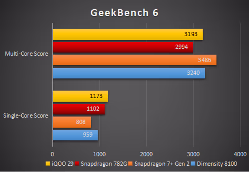 Peningkatan yang ada bisa dilihat dari sisi SoC-nya. iQOO Z7 menggunakan Snapdragon 782G. Walau masih ada pada seri prosesor yang sama, namun iQOO Z9 menggunakan yang paling baru, yaitu Snapdragon 7 Gen 3 dari Qualcomm. Pada sisi baterai, perangkat ini ternyata memiliki kapasitas yang lebih besar dibandingkan kebanyakan smartphone yang beredar di Indonesia. Pada sisi layar juga ada peningkatan pada refresh rate-nya.