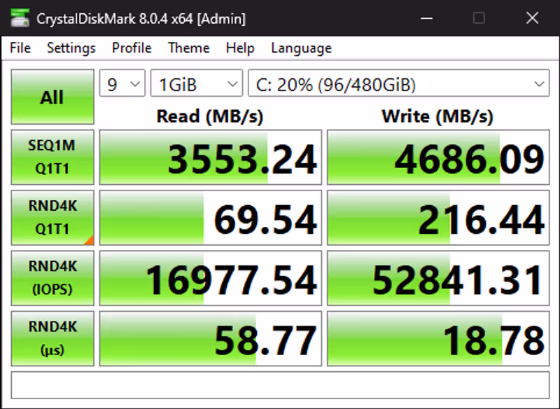 Dengan janji kecepatan 6000 MB/s, tentu saja SSD ini bakal menggunakan hampir seluruh bandwidth yang disediakan. Kinerja seperti ini sudah pasti kencang. Namun, tidak hadirnya pendingin bisa membuat kinerjanya turun.
