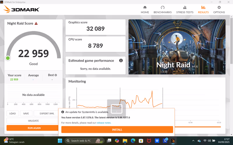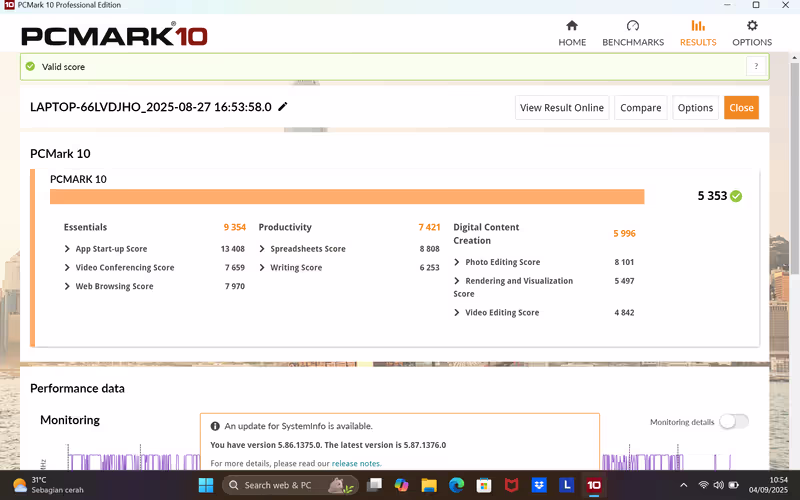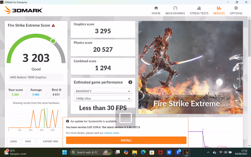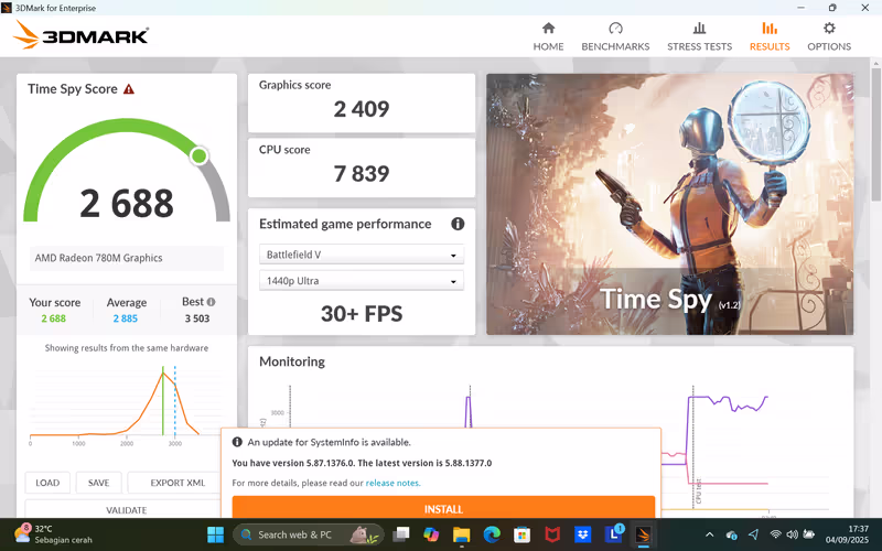 Grafis terintegrasi AMD Radeon 780M adalah salah satu iGPU terbaik di pasaran saat ini. Dalam pengujian game, Radeon 780M mampu menjalankan game-game modern dengan pengaturan grafis rendah hingga sedang. Sebagai contoh, game seperti Valorant dapat berjalan dengan framerate rata-rata di atas 120 fps, menawarkan pengalaman gaming yang sangat lancar. Ini menjadikan laptop ini bukan hanya alat produktivitas, tetapi juga perangkat yang mampu menyediakan hiburan gaming ringan tanpa perlu GPU diskrit.