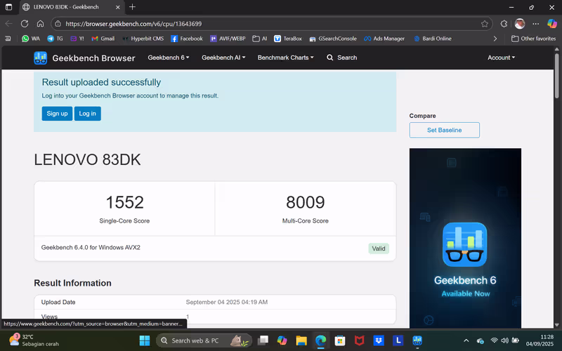 Performa adalah salah satu aspek terkuat dari Lenovo Yoga 7 2-in-1 14AHP9, berkat jeroannya yang mumpuni. Prosesor AMD Ryzen 7 8840HS, dengan 8 core dan 16 thread serta boost clock hingga 5.1 GHz, merupakan mesin yang sangat kuat untuk laptop berukuran 14 inci. Dengan RAM 16GB LPDDR5X berkecepatan tinggi dan SSD 1TB NVMe PCIe Gen4, multitasking menjadi sangat lancar, dan waktu loading aplikasi atau file besar sangat cepat.