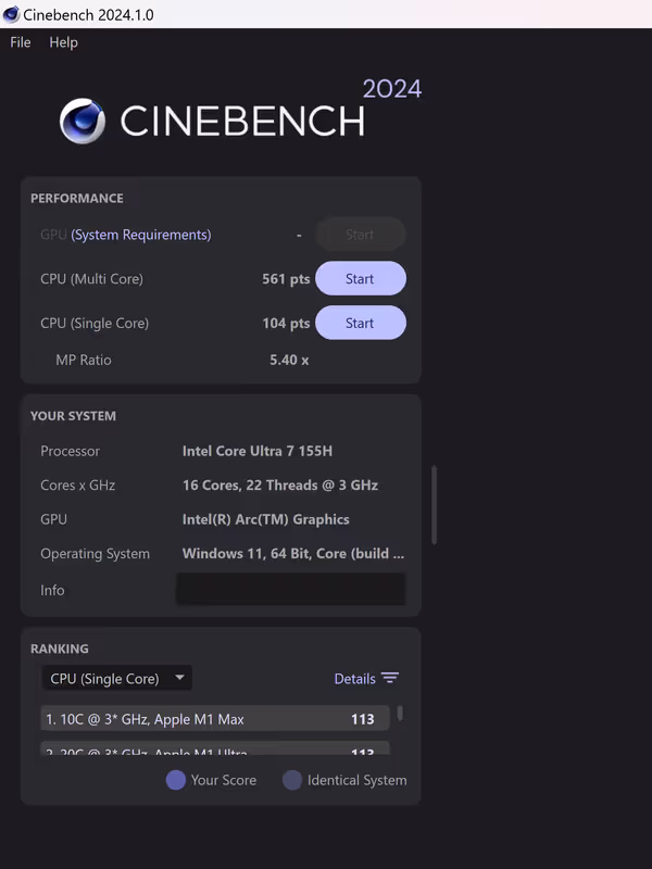Laptop yang datang ini menggunakan prosesor Intel Core Ultra 7 155H terbaru. Grafis terintegrasi yang ada pada prosesor ini sudah memakai Intel Arc yang memiliki kinerja lebih tinggi dari sang pendahulunya. Intel Arc sendiri juga sudah memiliki efisiensi yang lebih baik dibandingkan dengan Iris Xe.