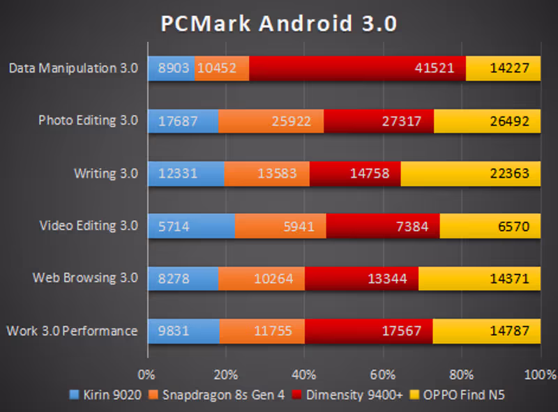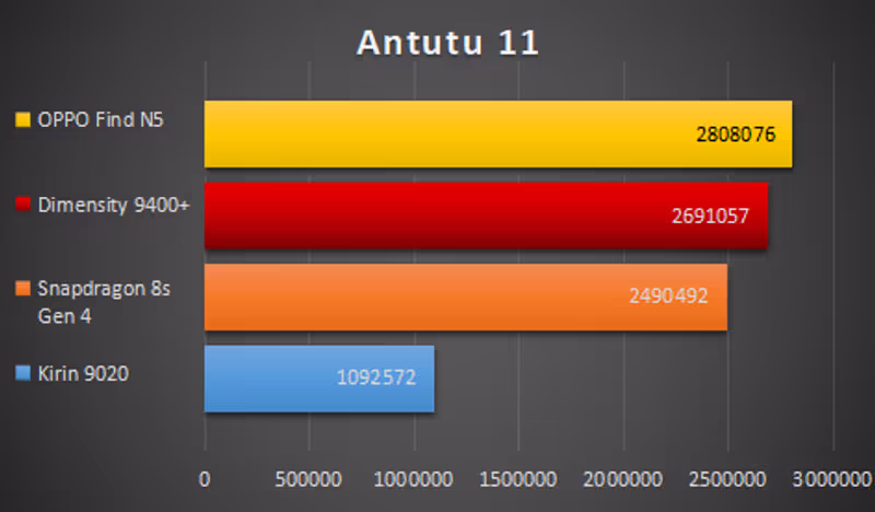 Performa OPPO Find N5 didukung oleh platform mobile Qualcomm Snapdragon 8 Elite, yang merupakan chipset paling mutakhir dari Qualcomm 2. Chipset ini memiliki CPU 7 inti yang powerful dan GPU Adreno 830 @1100MHz, yang dirancang untuk menangani tugas-tugas berat seperti gaming AAA dan editing video. Sayang memang, standarnya Snapdragon 8 Elite memiliki 8 core, dan OPPO mematikan satu core Oryon V2 Phoenix M agar suhunya bisa terjaga.