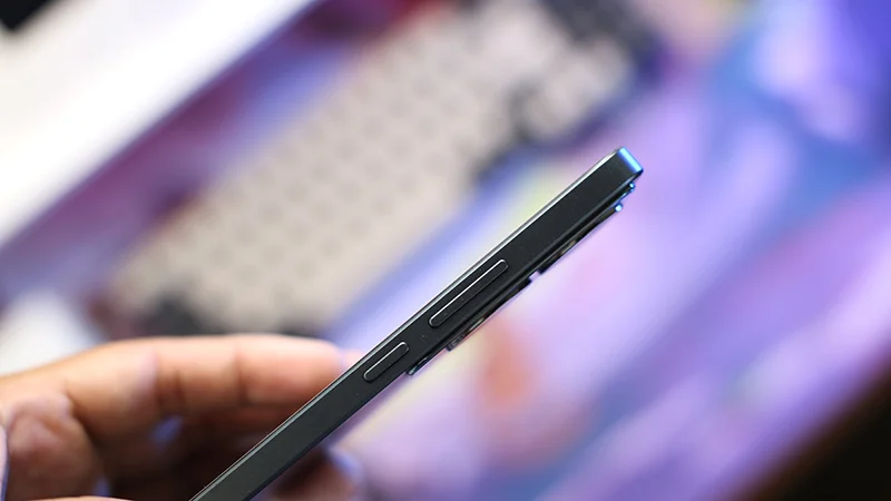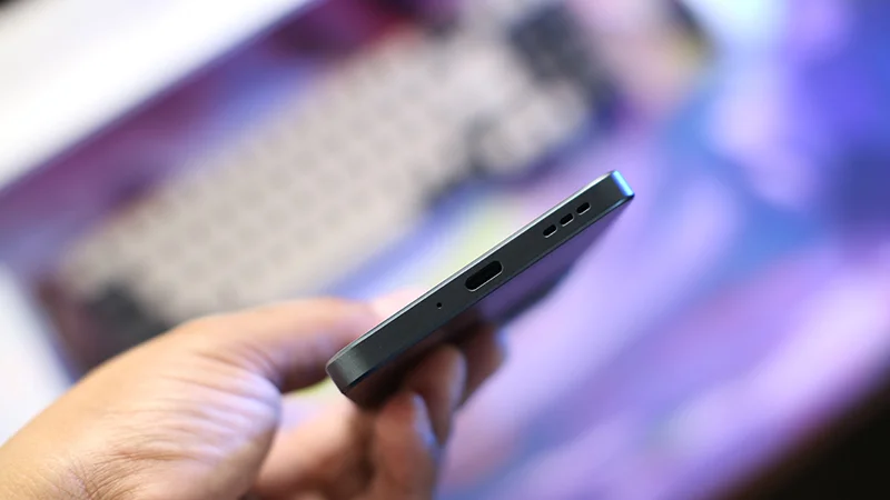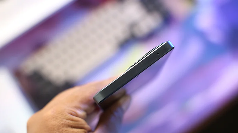 Menuju ke sekeliling, di bagian kanan terdapat tombol power dan volume, serta SIM Tray dengan dua slot Hybrid di bagian kiri. Di sisi atas cuma ditemukan mikrofon sekunder, sedangkan di bawah ada port USB-C, mikrofon, dan satu-satunya speaker.