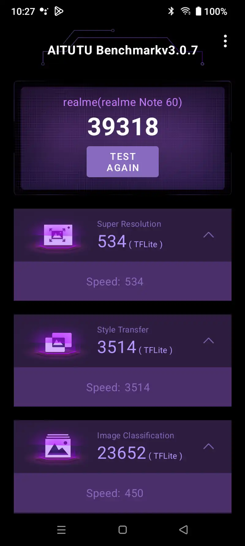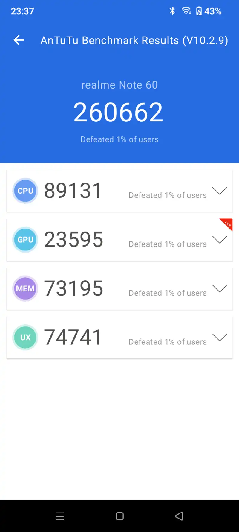 Selain digunakan untuk bermain game, saya juga melakukan pengujian kinerja dengan menggunakan aplikasi benchmark. Berikut adalah hasil benchmark dari realme Note 60.