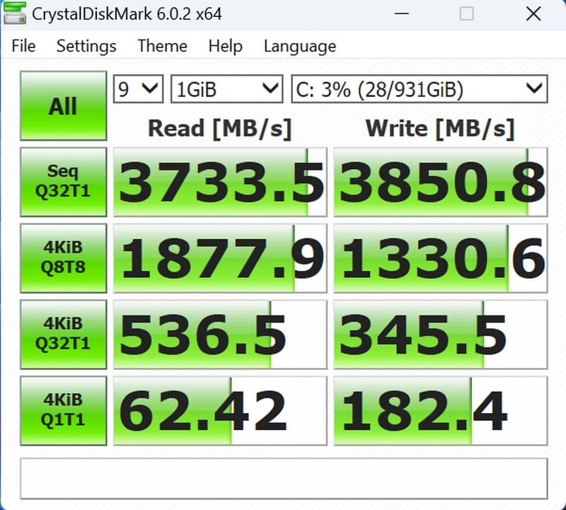 Saat menggunakan SSD ini, kinerjanya akan ada pada rata-rata 3,8 GB/s. Tentunya hal tersebut sudah terasa kencang bagi sebagian besar penggunaan komputer dari bekerja hingga menonton hiburan. Bermain game juga akan menjadi cukup kencang dengan rata-rata kecepatan tersebut.
