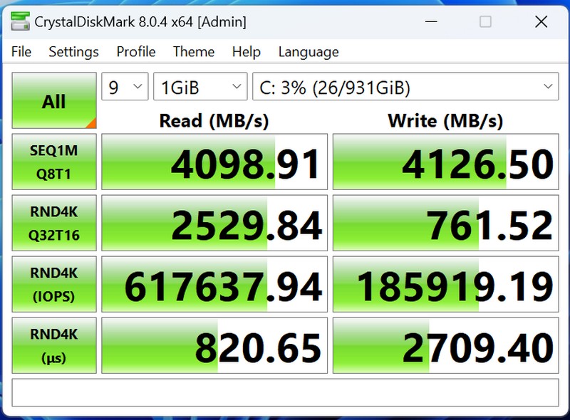 Dengan  janji kecepatan yang hanya 4150 MB/s membuat SSD ini tidak akan menggunakan bandwidth PCIe 4.0 x4 secara penuh. Walaupun begitu bukan berarti bahwa kinerjanya buruk. 4 GB/s sudah akan lebih dari cukup untuk penggunaan komputer sehari-hari dan bahkan dalam bermain game.
