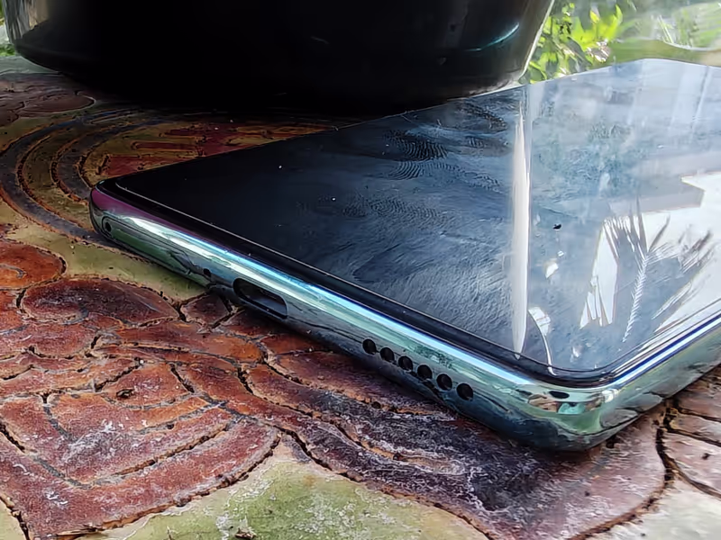 Tecno Camon 40 yang saya dapatkan memiliki Emerald Glow Green, dan memang sangat cocok untuk mereka yang bosan terhadap warna hitam. Desainnya mengusung konsep leher angsa dengan lekukan halus di bagian belakang yang memberikan kesan premium. Back case dan frame-nya terbuat dari plastik dengan lapisan glossy yang tahan sidik jari.