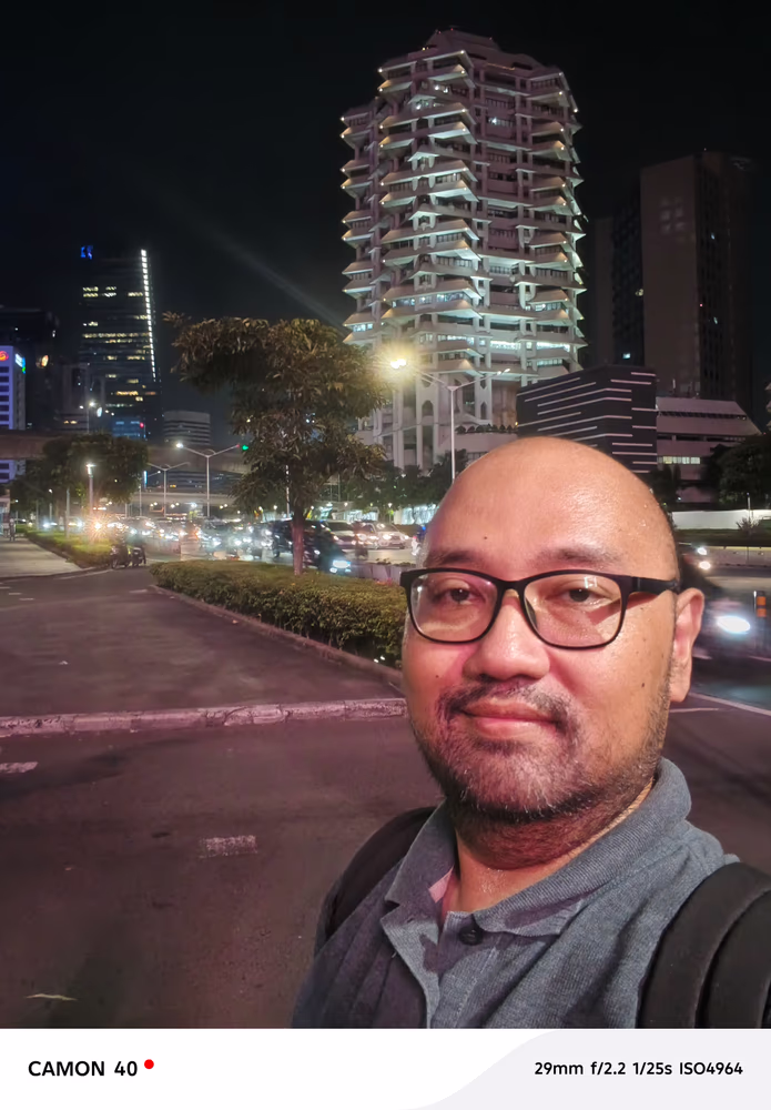 Untuk sebuah kamera selfie, ternyata Tecno Camon 40 bisa cukup diandalkan. Hasilnya cukup tajam pada bagian yang terfokus dengan tone warna kulit yang cukup pas. Hasil ini juga stabil pada saat pengambilan gambar dengan mode malam, membuatnya bisa diandalkan untuk kebutuhan swafoto.