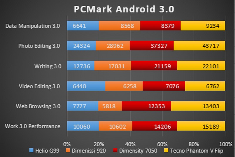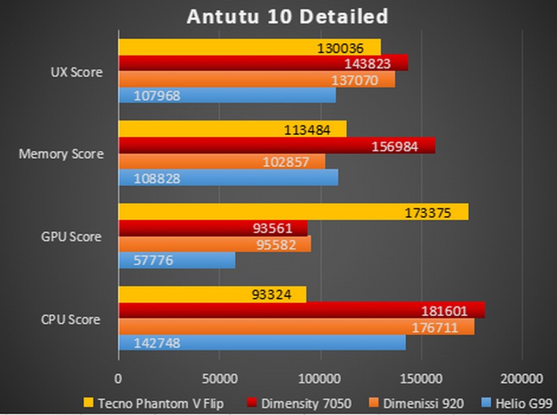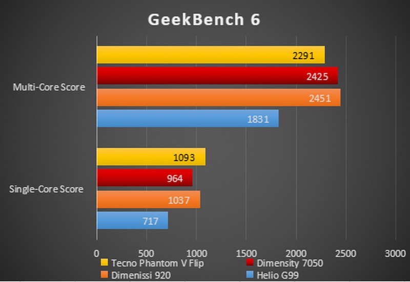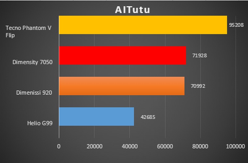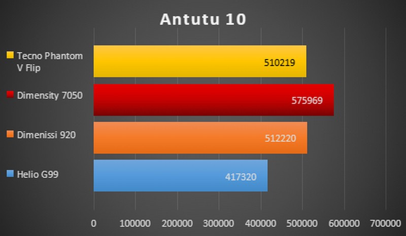 Untuk hasil benchmark dari Tecno Phantom V Flip, bisa dilihat pada gambar berikut ini