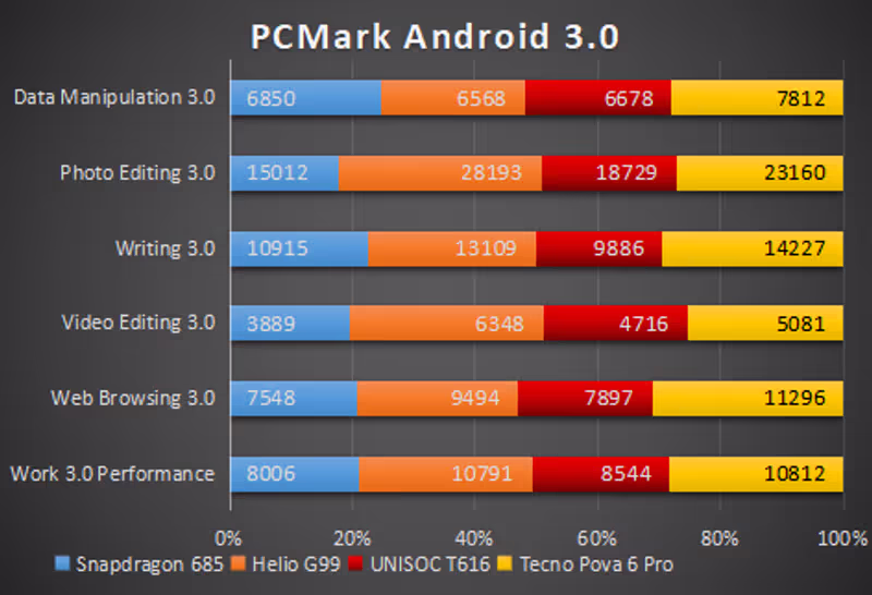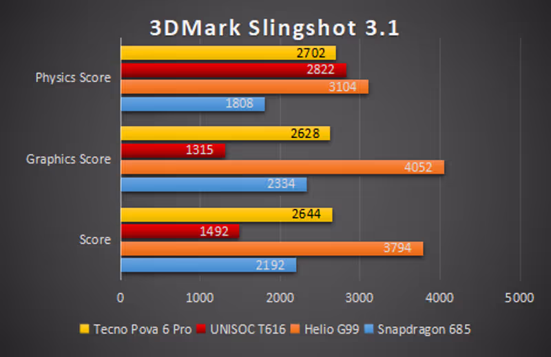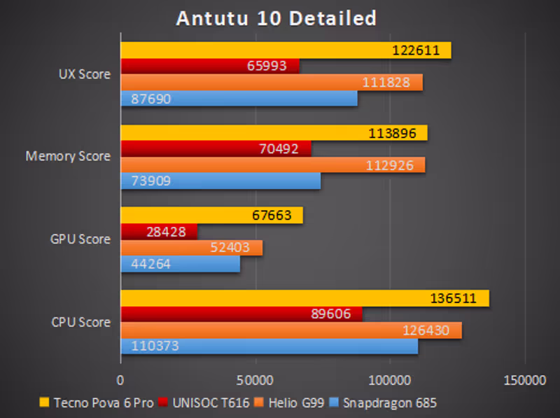 Tecno masih mempercayakan dapur pacunya dengan menggunakan chipset Mediatek. Untungnya, bukan Helio yang digunakan pada perangkat ini. Tecno Pova 6 Pro 5G menggunakan Mediatek Dimensity 6080 yang merupakan rebrand dari chipset Dimensity 810 yang diluncurkan tahun 2021 yang lalu. Walaupun begitu, chipset ini memang terbukti masih mampu menjalankan berbagai game dan aplikasi hingga saat ini.