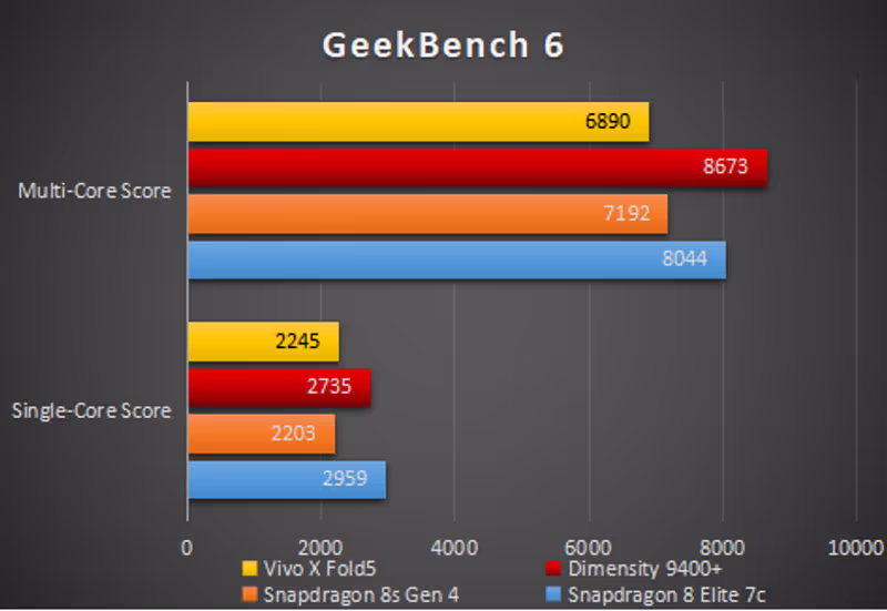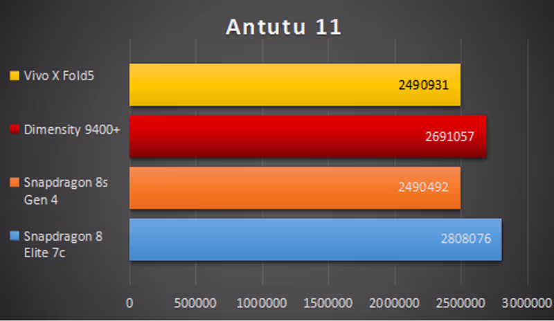 Di jantung Vivo X Fold5 tertanam chipset Qualcomm Snapdragon 8 Gen 3, prosesor flagship yang sama yang menggerakkan banyak smartphone kelas atas di tahun 2025. Dipadukan dengan RAM LPDDR5X Ultra 16GB dan penyimpanan UFS 4.1 512GB, kombinasi ini menjanjikan performa yang sangat tangguh untuk semua jenis tugas. Oleh karena menggunakan chipset kelas atas, tentu saja setiap game mampu dijalankan dengan framerate yang tinggi.