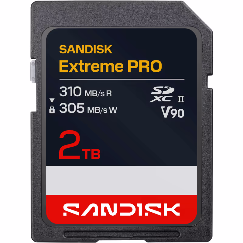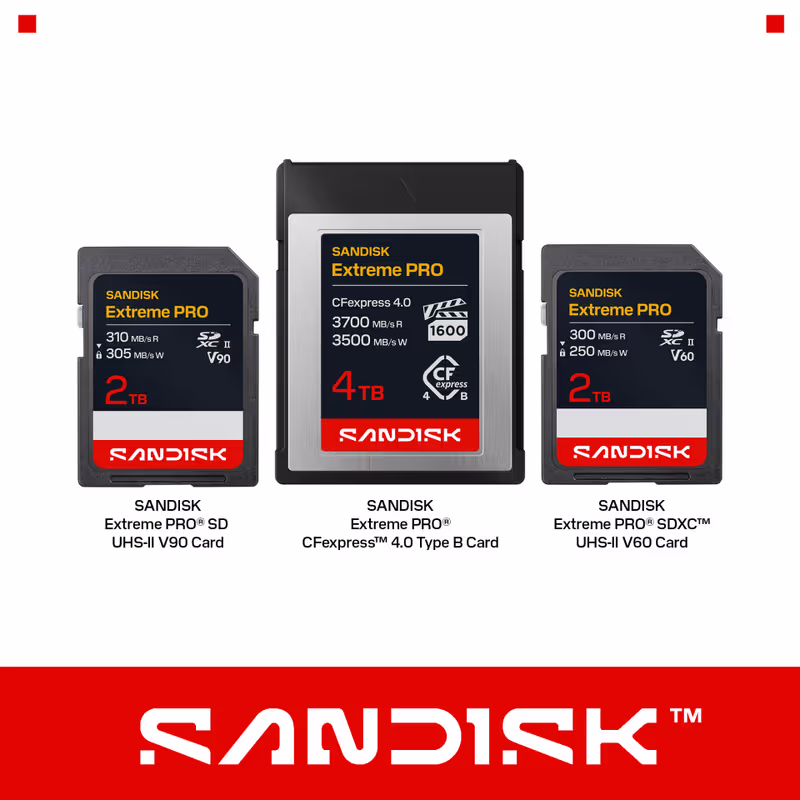 Tidak hanya CFexpress, Sandisk juga memperbarui lini SDXC UHS-II V90 dengan kapasitas lebih lega. Kartu seri V90 ini sekarang hadir dengan pilihan kapasitas penyimpanan maksimal mencapai angka 2TB. Kecepatan baca yang ditawarkan mencapai 310MB per detik untuk mendukung alur kerja produksi tinggi. Sementara itu, kecepatan tulis kartu memori ini sanggup menyentuh angka hingga 305MB per detik.