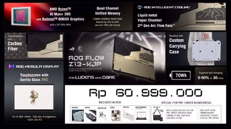 ROG Flow Z13-KJP hadir di Indonesia dengan status yang sangat eksklusif dan juga langka. ASUS hanya menyediakan sebanyak 50 unit saja untuk seluruh pasar di wilayah Indonesia. Hal ini menjadikan perangkat tersebut sebagai salah satu item koleksi yang paling diburu kolektor. Kelangkaan ini tentu menambah nilai prestisius bagi siapa saja yang berhasil memilikinya sekarang.