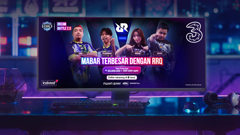 Indosat Ooredoo Hutchison melalui brand Tri kembali menghadirkan H3RO Land Dream Battle 2.0. Ajang ini menjadi lanjutan dari kesuksesan sebelumnya yang menggabungkan kompetisi Esports dengan pengalaman gaming menyeluruh. Tahun ini, Tri menggandeng tim Esports ternama Rex Regum Qeon (RRQ) untuk menghadirkan kesempatan lebih dekat bagi para penggemar.